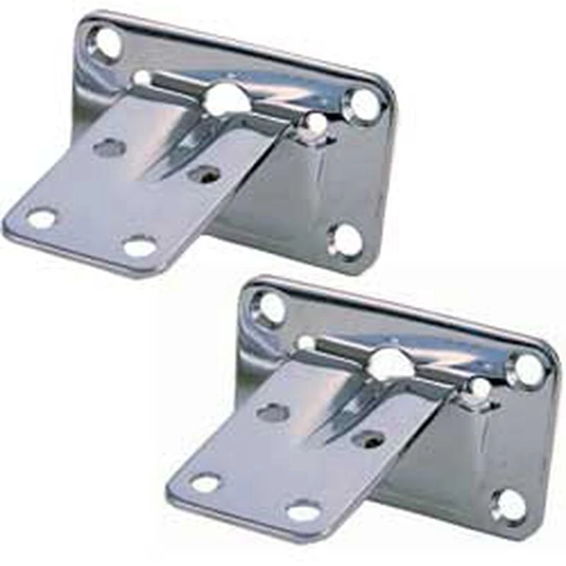 A pair of chromed-brass or highly polished stainless-steel brackets and wall plates give solid table support.