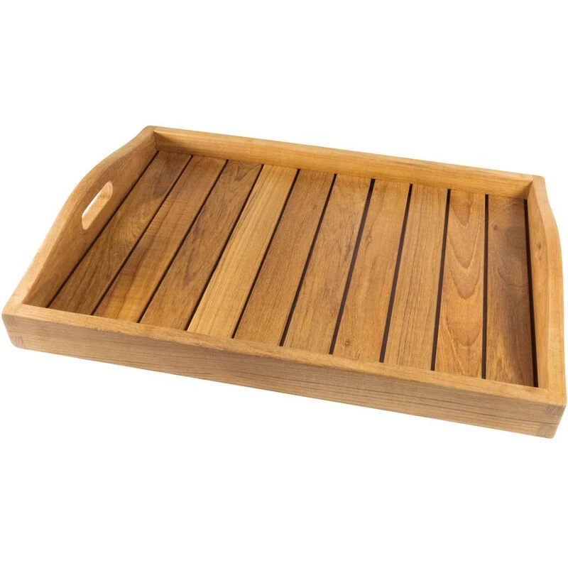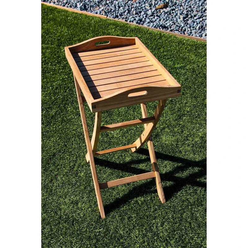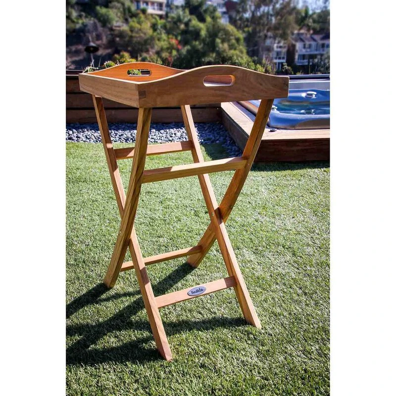 Break out the wine and cheese or any of your favorites snacks and present them with style on this high-quality teakwood serving tray that folds up for compact storage.