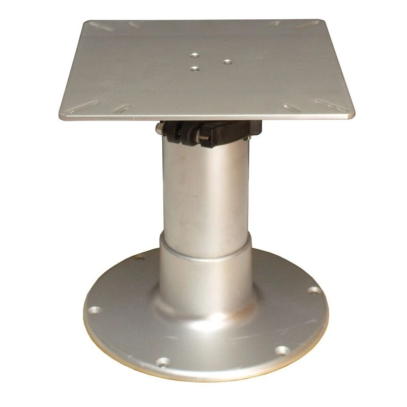 12-1/2″ square table mount. 12″ diameter base with 11″ hole pattern for added stability. Nylon clamping bushings with stainless steel hardware. Air-powered height adjustment, Adjusts 12-3/4″; 20″; 28″.