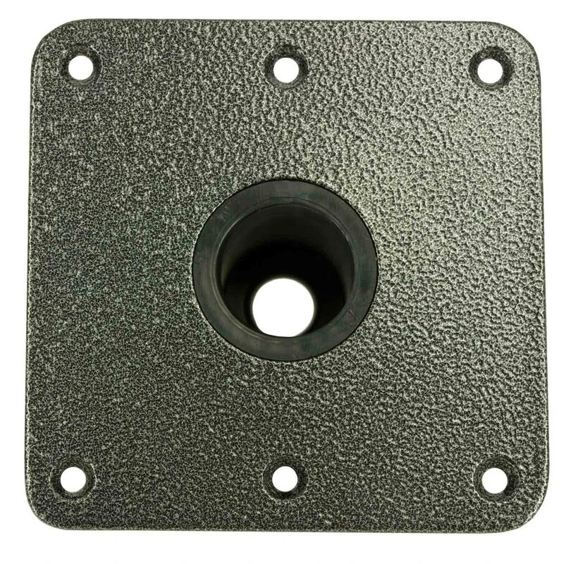 7″ x 7″ square base, mild steel with powder coat finish. Below the deck mount requires a 4″ hole in deck. Use with any non-locking Spring-Lockâ„¢ post.