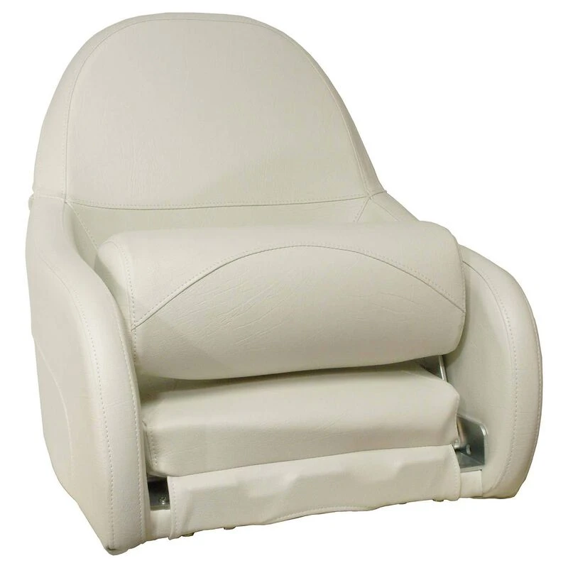 Comfortable runabout seat or flip-up the bolster for standing or leaning position. Roto molded high-strength composite shell with high density foam padding covered in marine grade vinyl with large dry pocket on back of seat.