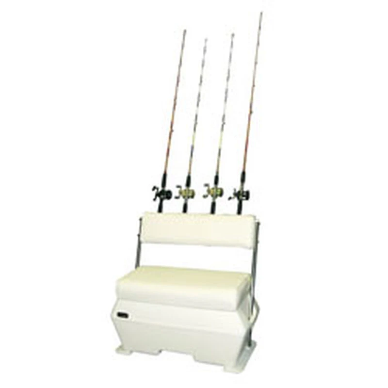Angler-friendly seats feature four rod-holders in the seat back for convenience and either dry storage space or a cooler/livewell. The cooler/livewell version has double walls and foam insulation with rounded corners to prevent bait from getting trapped. Includes a hinged lid with a recessed, rubberized gasket for a tight seal and a drain fitting.