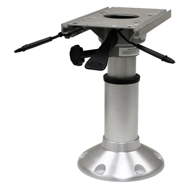 Wise 8WP145 2 7/8″ Mainstay Power Pedestal with Slide features heavy duty construction. 9″ diameter base plate with recessed and knurled mounting holes. Adjusts 14″ to 20″, 2 3/8″ diameter exterior post. Locks and swivels 360 degrees. Fore and aft slide has 5 1/4″ of travel. Great mounting system for all helm seat applications. 5 1/4″ standard mounting pattern fits virtually all seat brands.